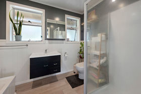 If you're seeking a spacious, light-filled home with a stunning kitchen-diner, this 3-bedroom brick beauty in Fairy Springs is perfect for you. The high-pitched ceilings in the kitchen and lounge create an airy, open feel, while French doors from the dining area lead to a covered deck - ideal for seamless indoor-outdoor living and entertaining.