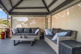 Outdoors, this home really turns on the charm. The private garden feels more like a resort - framed by palms, layered decking and a spa zone made for long evenings under the stars. There's even a covered cabana for relaxed entertaining, adding a touch of holiday energy to everyday life. Practicality comes built-in: a double internal-access garage, great storage, five off-street parks and effortless indoor-outdoor flow.