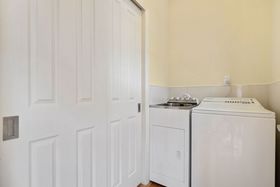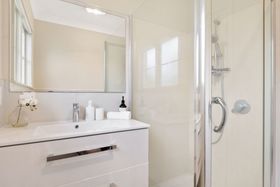 Three well-proportioned bedrooms offer flexibility for family living, guests or a home office. The main bedroom opens via French doors to the front porch, adding character and an extra layer of connection to the outdoors. The bathroom is neatly presented with a modern vanity and glass shower, while a separate WC supports smooth daily routines. A dedicated laundry room is positioned off the kitchen area.